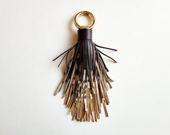 Animal Print Leather Tassel Keychain In Dark Brown And Gold Etsy